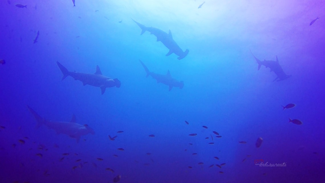First of all, let me assure you that majority hammerhead sharks are harmless to humans. From nine species of hammerhead sharks, only three species that considered dangerous. The most aggressive of the hammerhead species are scalloped hammerhead, whitefin hammerhead, and great hammerhead. However, there are rare fatalities caused by the hammerhead sharks. We were lucky to finally scuba diving with the hammerhead sharks in Wolf and Darwin Islands, Galapagos (Ecuador). We had been diving with them for four days and none of the scuba divers were attacked by the hammerhead sharks. The rule of thumb: leave them unprovoked, they will not harm you.