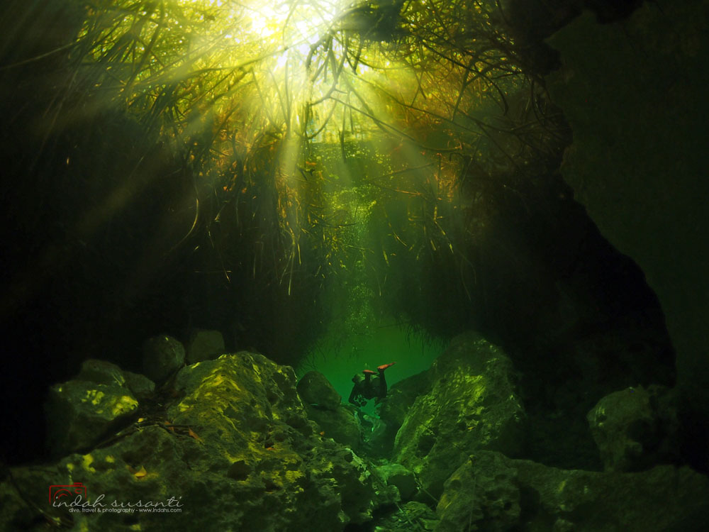 I love playing the available lights on my camera whether when I am scuba diving deep below the water or when I am in the land. The rays in this image are enhanced by using Photoshop CS editor. However, above of all, this cenote is a unique one; its water is a mix of salt and fresh waters, and the cenote was covered by mangrove forest. A complete story about this cenote will follow on the future post.  I will return soon for blog-walking, have a great weekend!