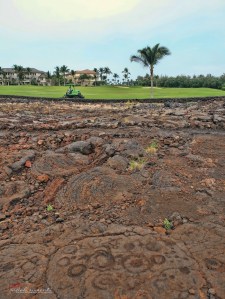 There are three popular petroglyph reserves in the Big Island, and two of them are on our way: Puakō Petroglyphs and Waikoloa Petroglyph. Meanwhile the third one, the largest field in Polynesia, Pu’u Loa Petroglyph, is located inside the Hawaii Volcanoes National Park. We chose Waikoloa because of its location was easier to reach compared to Puakō Petroglyphs field. The petroglyph is located in a resort complex of hotels, vacation houses – well, more like luxurious villas to me, golf driving range, shopping area and as well a gas station. It’s kinda weird setting and you had to pass privately own pathways when leaving the field.