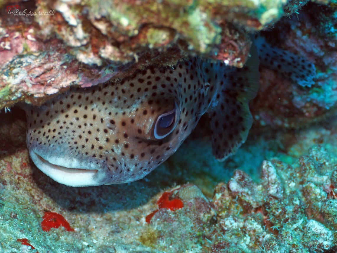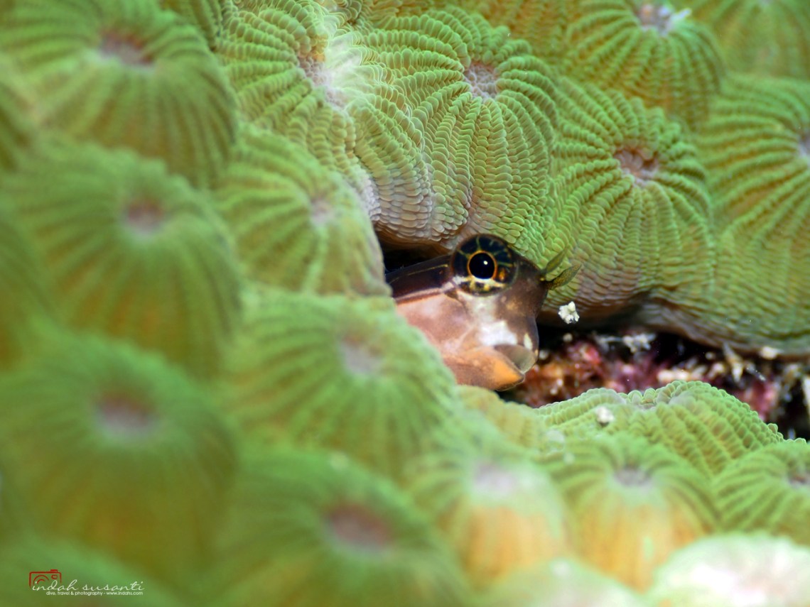Some marine species are known to stay inside hideouts along the seabed or on the holes of the corals. I have seen numerous fish took a peek while part of their body still hidden inside their natural habitat, the holes of the corals or sands.