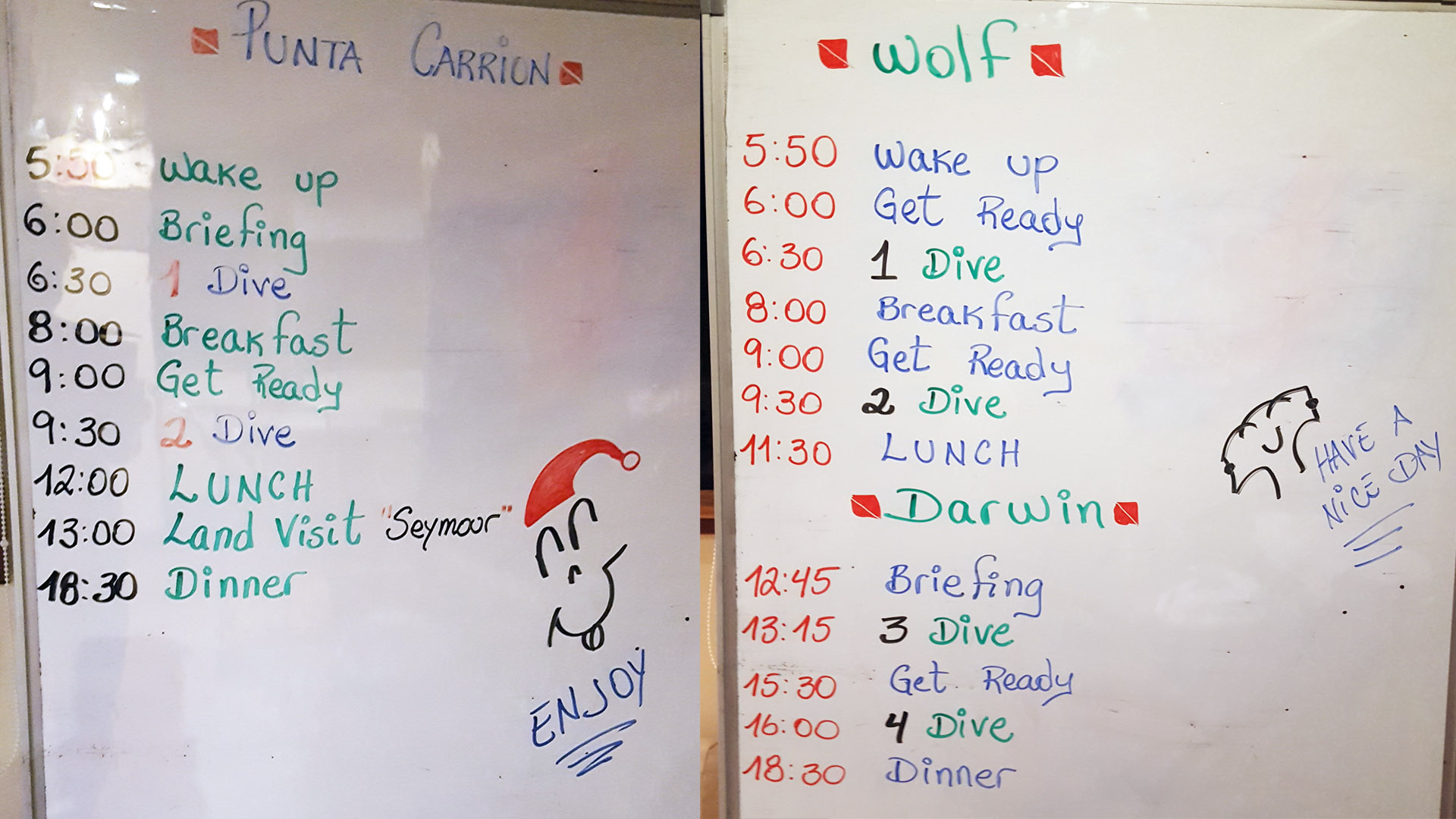 Our daily scuba diving schedule on the boat for seven days: Wake Up, Dive, Eat, Sleep. It’s busy life, you know 😉