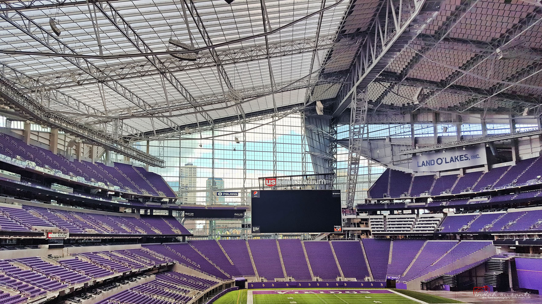 The stadium has a capacity of 66,000 to 70,000 seats with numerous clubs and lounges. The tour included the visit to the NFL lounge and numerous companies-sponsored clubs such as Medtronic, Delta Airways, and some more companies. They had modern design rooms, luxurious, and elegant rooms. One of the VIP bars, for instance, not only it has an amazing view of the field but it also has a huge terrace with a view of the city. I was surprised by the number of companies sponsoring a sports stadium. Obviously, the American football is very popular, but the stadium is not just for the football, it also hosts other events such as music concerts and even a wedding party! Yep, the stadium is a popular venue for a couple to get married and to celebrate their special day especially if they are Vikings fans.