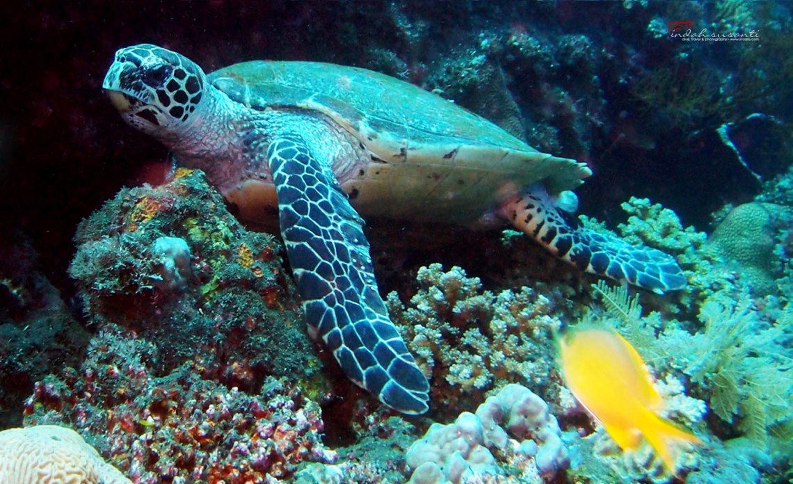 I think this one is a sea green turtle. The turtle was seen in Indonesia.
