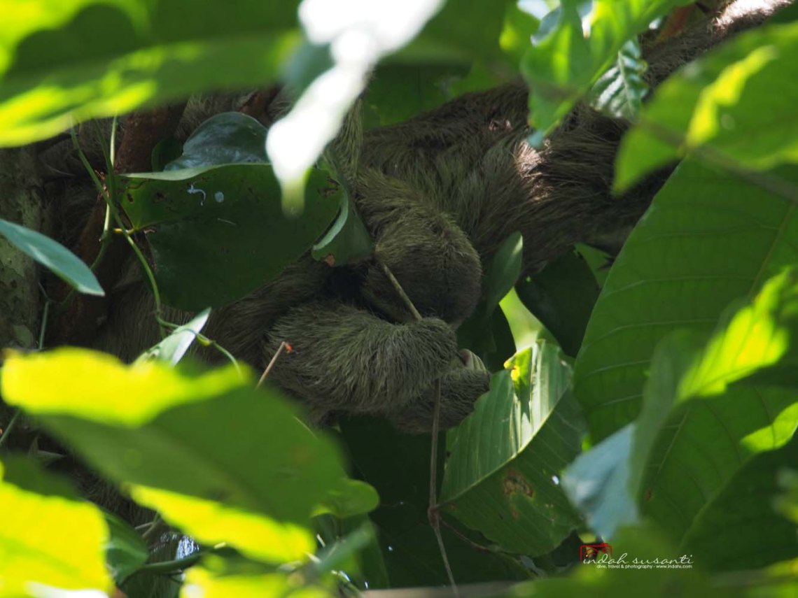 And we did see the wild sloths on the national park! A smiling baby sloth with his bottom toward us and his sleeping mother.