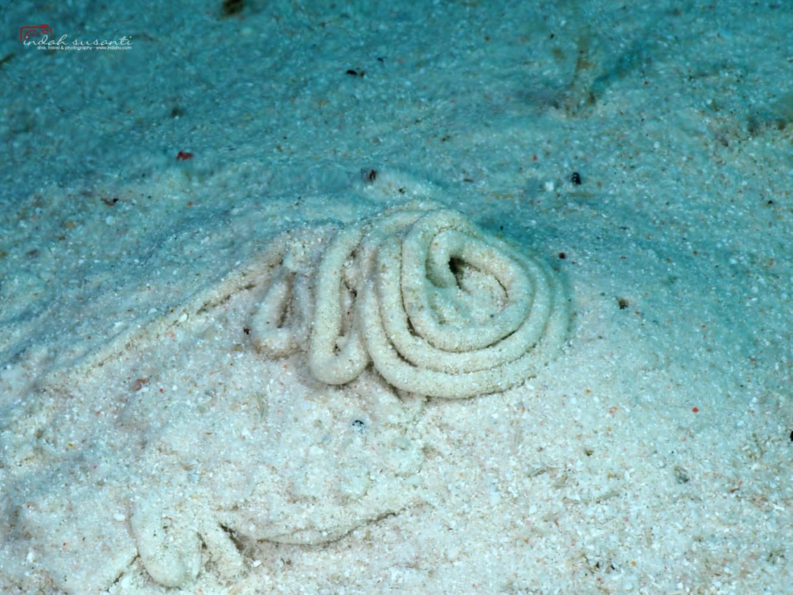 Sea cucumbers are known to be a species with function as “vacuum cleaner of the ocean”. They eat the deads, the poop of other marine animals, well basically, they eat things like the carcasses and excrement in the sea, and they ingest sands too. Their role is already crucial to clean the sea, then their poo is revealed to have benefits to the seas and the coral reefs such as increasing pH levels in the water and calcium carbonate (CaCO3) that important for the coral reefs, and the poo also serves to fertilize and providing nutrients for the corals and the surrounding area. If you wonder what the sea cucumbers’ poo looked like, they actually look like sand. Following is an image of the “sand” poop that I saw when scuba diving in Indonesia. Sea cucumber was a prime suspect to produce such poo.