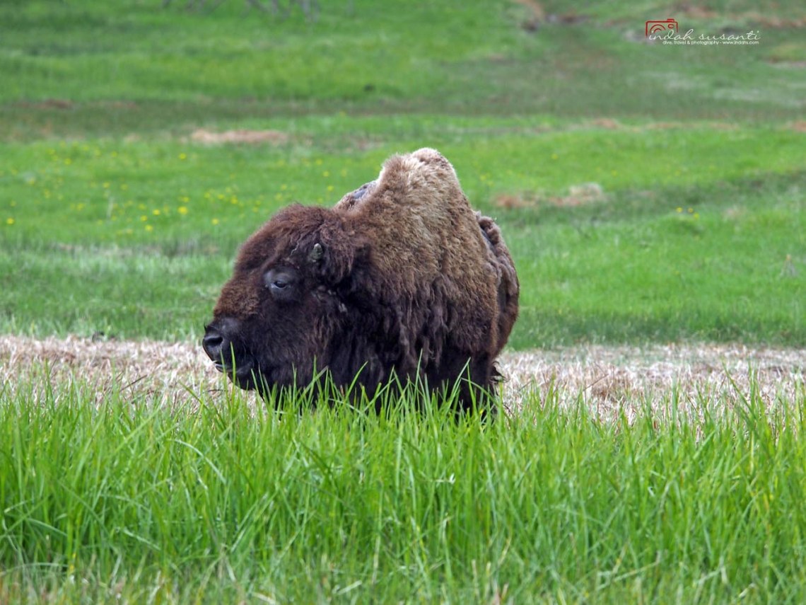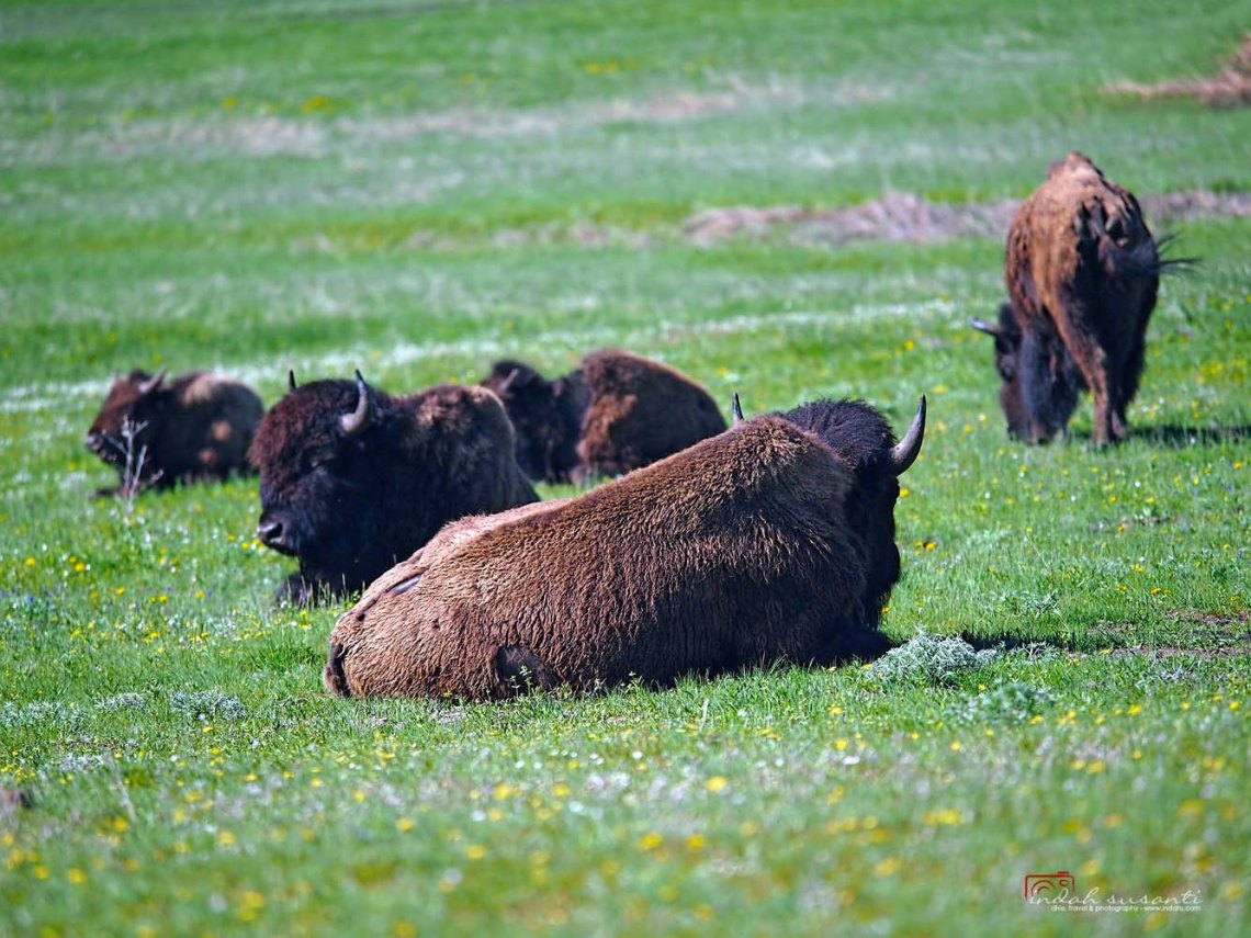 Just like in Yellowstone National Park, we saw a large number of bison. In fact, we experienced bison crossed the road in front of our car. Not just once, but a couple times! Following is a video we made when the bison crossed the road then decided to walk right in front of our car. Of course, we just had to drive behind the bison as slow as possible following his move. The bison was the boss 😉