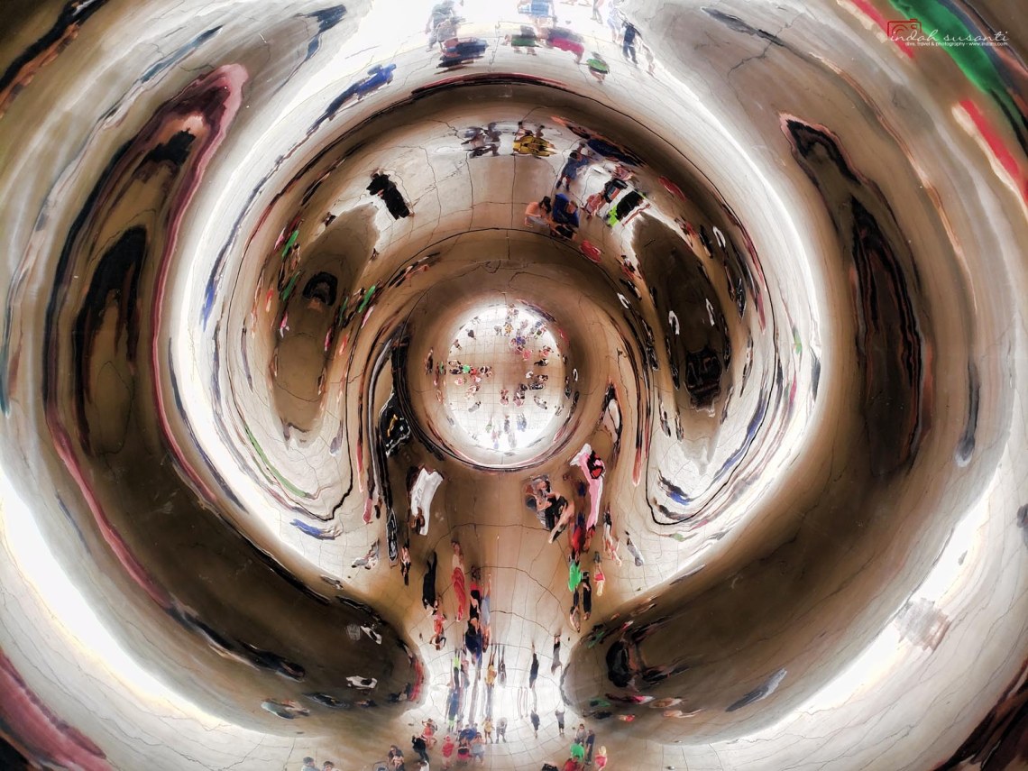 Cloud Gate or the Bean (it does look like a bean) in Chicago (USA), is truly an impressive sculpture by Anish Kapoor. It was placed in the Millennium Park of Chicago since 2006. The sculpture is truly a masterpiece, made from highly polished stainless steel plates. Even after more than ten years later, the sculpture still attracts people to see it and in a pretty good condition.