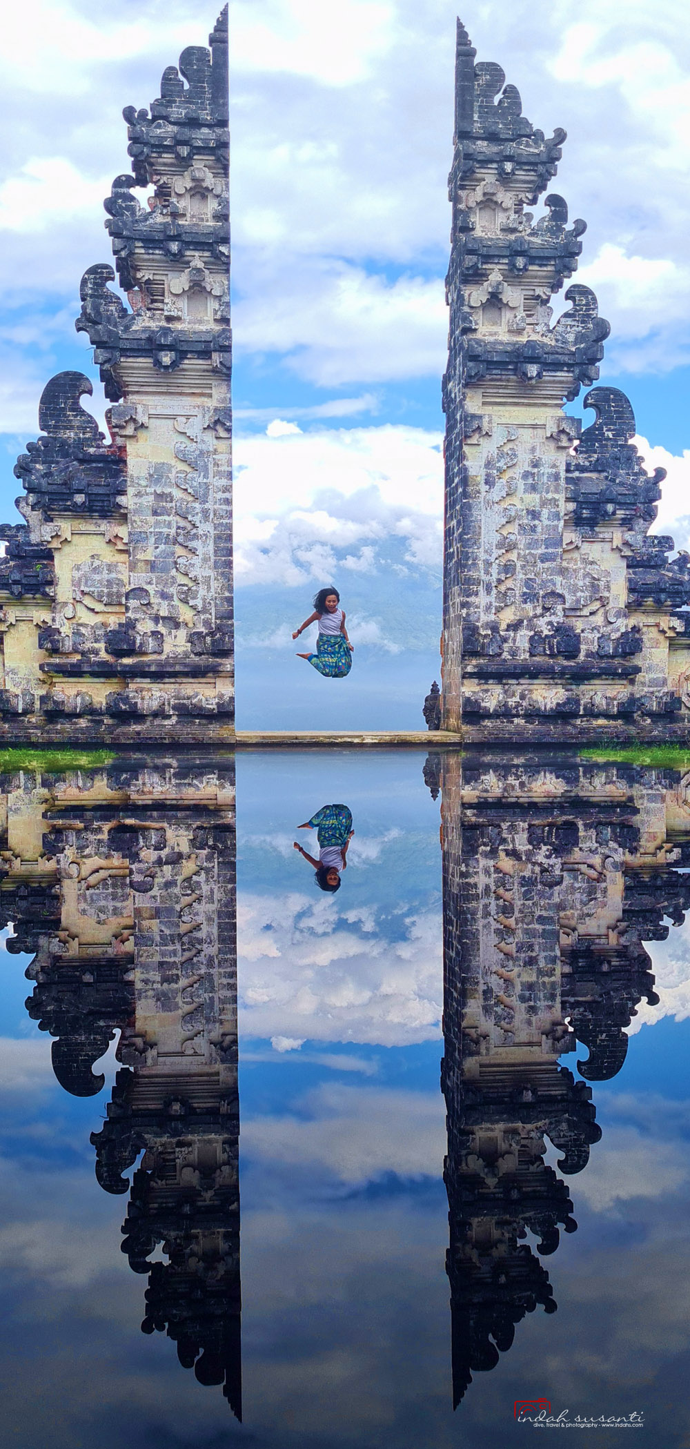 Lempuyang Temple is also famous for its Instagram-worthy photo spot, known as the “Gate of Heaven” or “Pura Lempuyang Luhur Gateway.” This iconic gate frames the majestic Mount Agung in the background, creating a stunning visual effect. It’s important to note that the images you see in the following photographs are illusions created by strategic angle positions from my mobile-phone camera with mirrors.