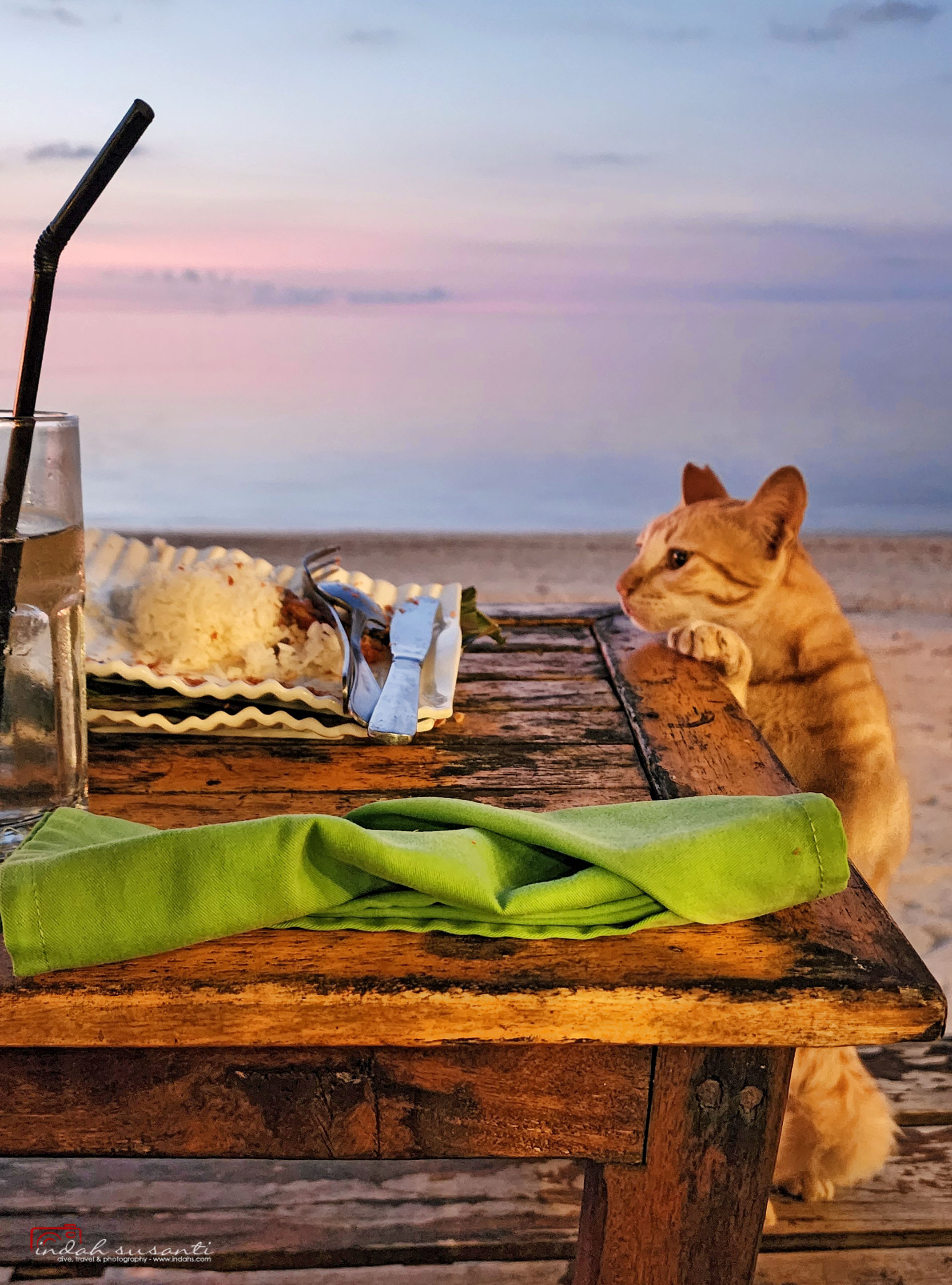 One thing striking about Gili Islands’ character is its abundance of cats. They’re everywhere—lounging on café chairs, napping under palm trees, or casually strolling through the sandy streets like they own the place. With no cars to dodge and plenty of human admirers, island life seems to suit them perfectly.
