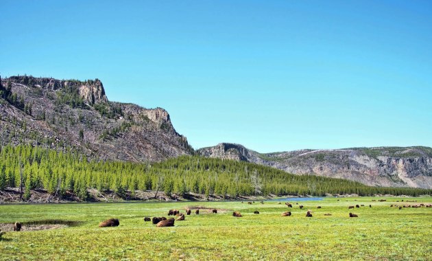 A picturesque valley next to Yellowstone River, where the herds of bison are usually seen. Although we did not see many bison on our stop at the valley, the scenery of the Hayden Valley was truly breathtaking.